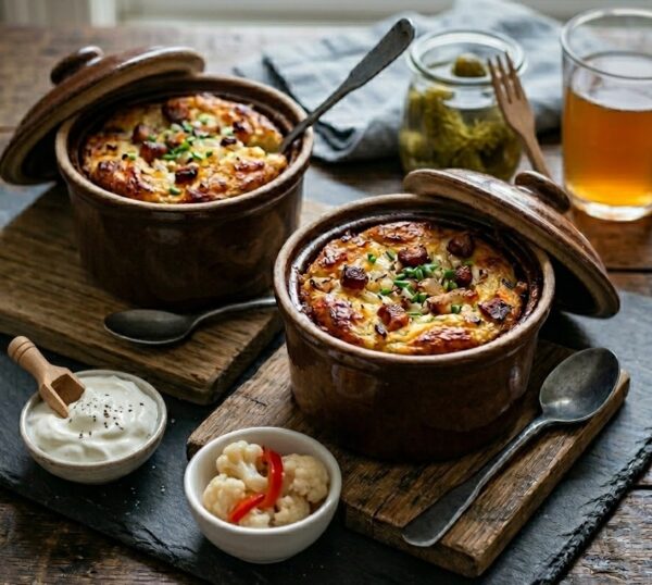 4. Картофельная бабка — это кулинарное воплощение простоты, сытности и домашнего уюта. Будучи абсолютно самодостаточным блюдом, в котором нежно соединены картофель, шкварки и томленый лук, она не требует сложных дополнений. Идеальным сопровождением к бабке станет холодная домашняя сметана, которая создаст приятный контраст температур, а также свежие или маринованные овощи (соленые огурцы, квашеная капуста), которые оттенят насыщенный вкус запеченного картофеля. Подавать её лучше всего горячей, прямо из печи или духовки, собирая за одним столом близких людей для неспешной и душевной трапезы.