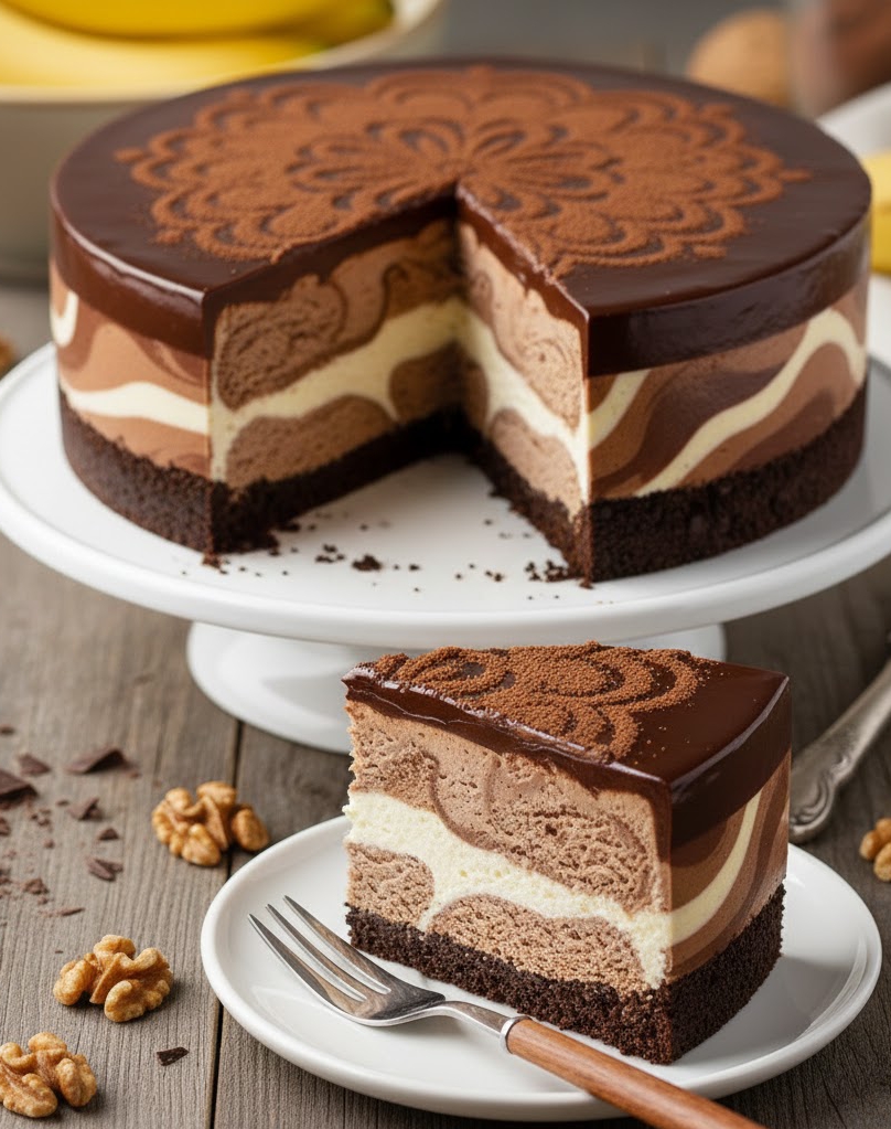 Бананово-шоколадный муссовый торт «Зебра»