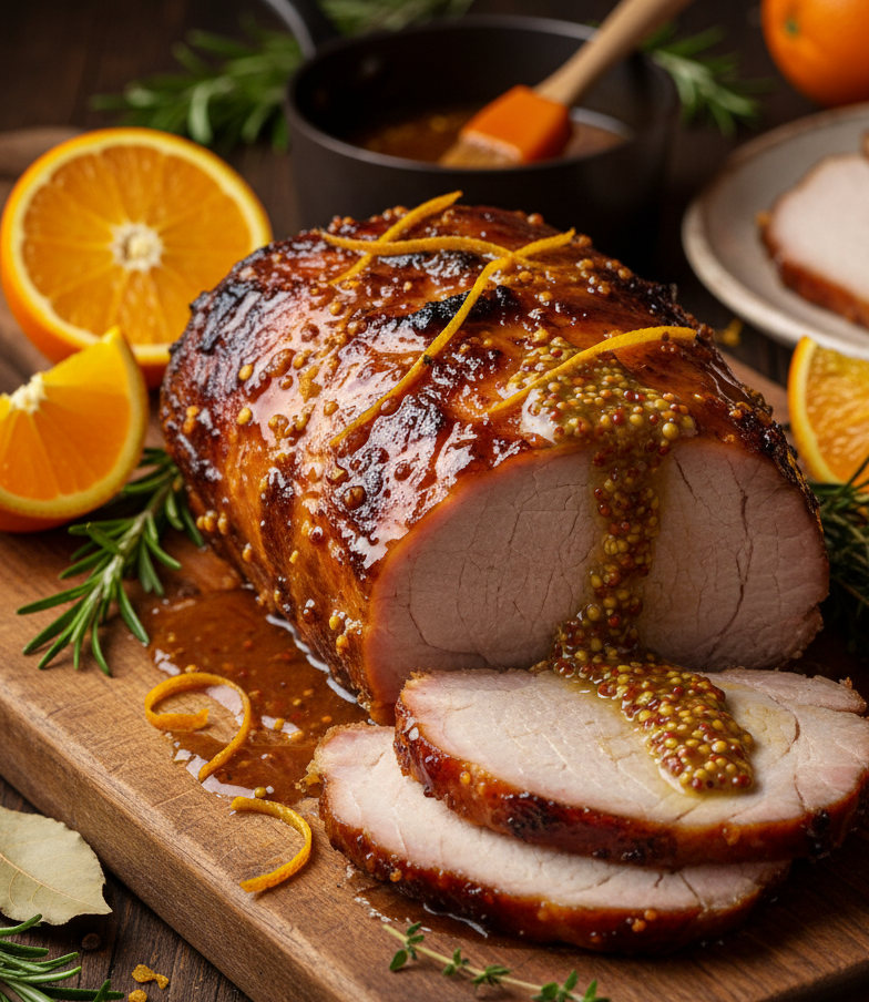 Буженина в карамельной глазури с горчицей и апельсином