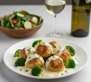 Куриные фрикадельки с брокколи в сливочном соусе