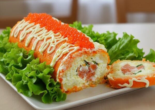 - Собрать торт "Мимоза-Наполеон" в такой очередности; корж, майонез и половину лука с морковью. Далее корж, майонез и половину скумбрии с зеленью. Следующий корж, майонез и половина сыра с яйцом. Следующие три коржа повторить.