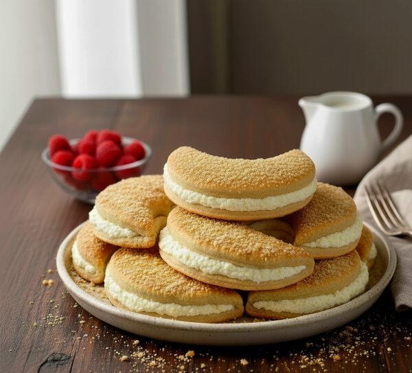 - На половинку каждого кружка положить по чайной ложке начинки. Накрыть нижнюю половину сочников с начинкой верхней и просто чуть прижать.