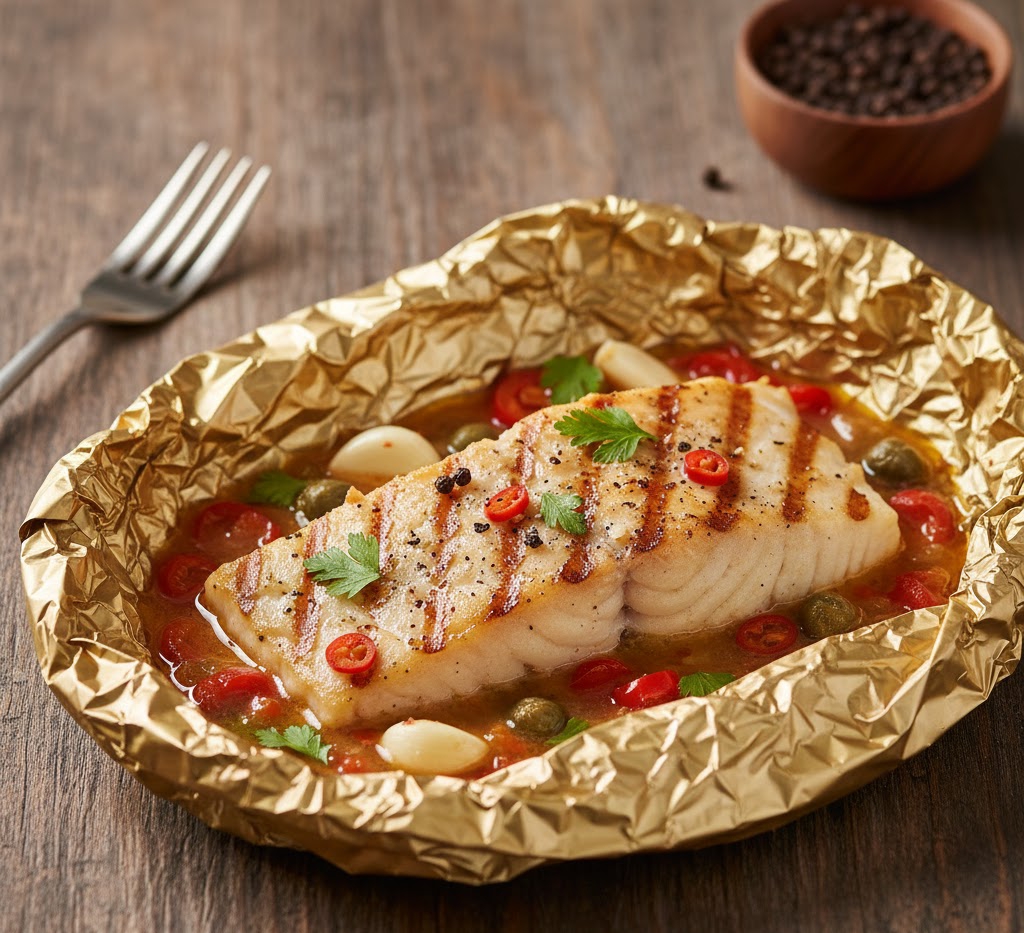 Рыбное филе со специями и чесноком в фольге