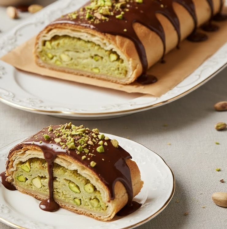 Штрудель с фисташковой начинкой и шоколадной глазурью