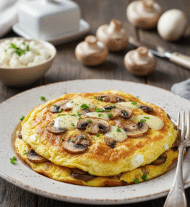 Сытный творожно-яичный омлет с грибами