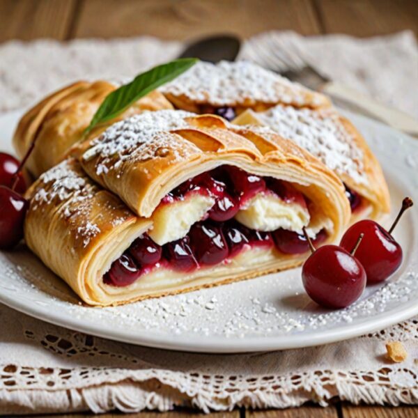 - Вишневый штрудель с творогом – это изысканное сочетание нежной творожной начинки и сочной вишни, заключённое в тонкое слоеное тесто. Это блюдо станет настоящим украшением любого стола, будь то семейный ужин или праздничный фуршет. Сочетание сладкой вишни и кисловатого творога создает неповторимый вкус, а хрустящее тесто придает штруделю особенную текстуру.