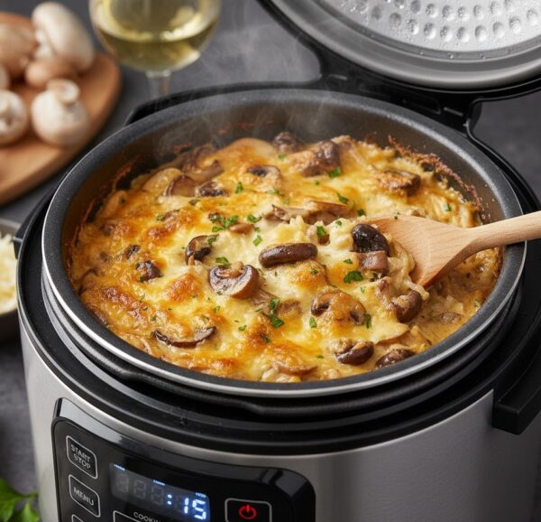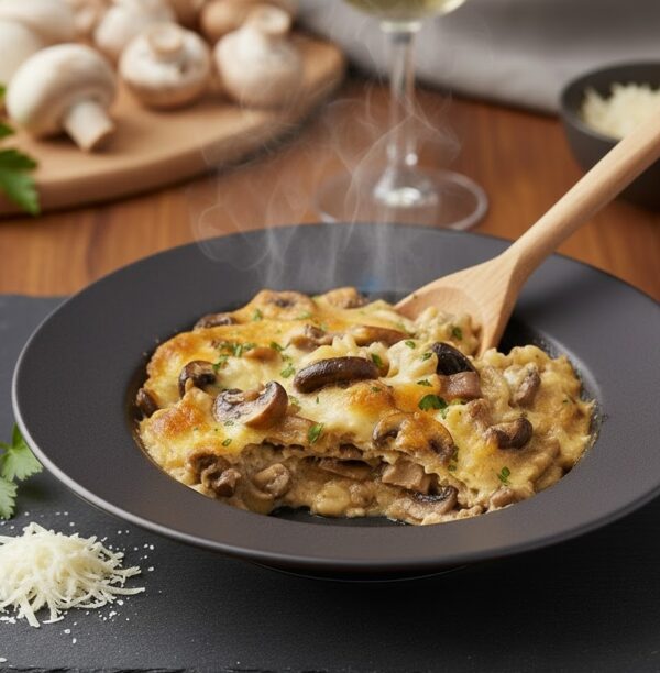 - Лук репчатый очистить, вымыть и нарезать кубиками, слегка обжарить на растительном масле, добавить мелко нарезанные шампиньоны и обжарить все вместе до готовности.