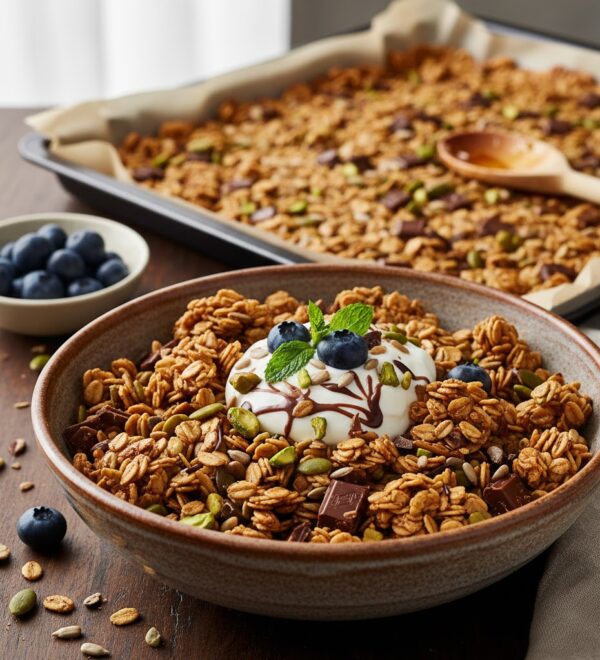 - Вот и всё! Ваша роскошная, хрустящая и ароматная гранола с фисташками и шоколадом готова. Это не просто завтрак, это инвестиция в ваше хорошее настроение и энергию на весь день. Храните ее в герметичном контейнере, чтобы сохранить невероятный хруст. Наслаждайтесь этим домашним деликатесом, зная, что вы контролировали каждый ингредиент!