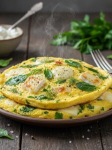 Творожно-яичный омлет с зеленью и мягким сыром